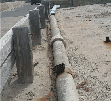 The existing bridge conveys a 10” potable watermain providing a vital connection (as there is no redundancy) between the communities on the north and south parts of the island. The Polyvinyl Chloride (PVC) pipe has not been protected from the elements (UV light) and shows the impact that UV degradation has on unprotected PVC pipe (Figure 10). In addition to the PVC, the potable water main is also constructed of concrete pressure pipe (Figure 11), exposed on the bridge (but protected from the adjacent traffic).